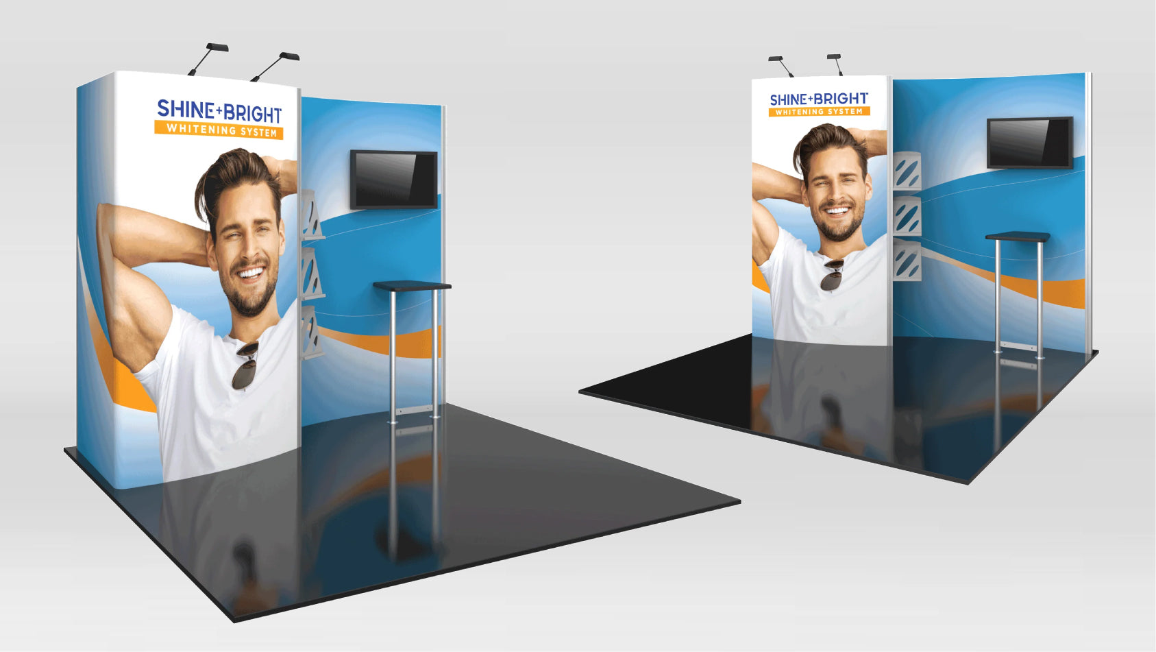 Hybrid Pro 10ft Modular Exhibits offer a sleek, modern solution for trade shows and events. Featuring durable aluminum extrusion frames and push-fit SEG fabric graphics, these modular and reconfigurable backwalls, kits, and counters deliver a professional, high-impact presentation that adapts easily to your unique branding and event needs.