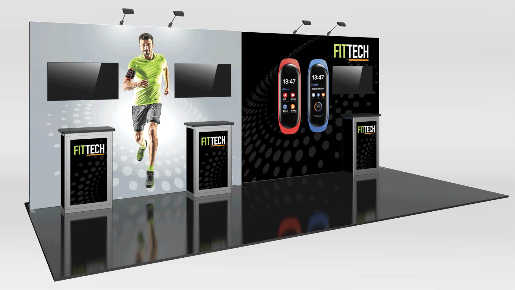 Hybrid Pro 20ft Modular Exhibits provide a modern, professional solution for trade shows and events. Built with strong aluminum extrusion frames and push-fit SEG fabric graphics, these modular, reconfigurable displays offer exceptional versatility and visual impact, allowing you to showcase your brand with style, efficiency, and confidence in any event setting.