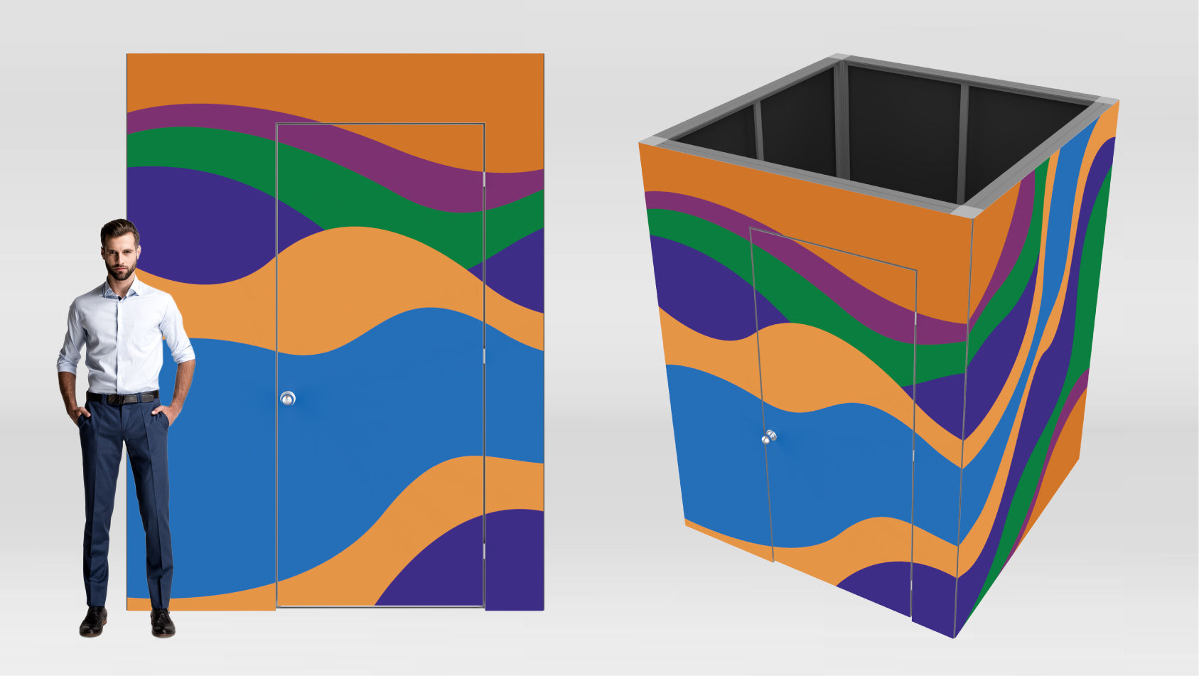 Hybrid Pro Modular Closets combine style, functionality, and security to enhance any island exhibit. Built with durable aluminum extrusion frames and push-fit SEG fabric graphics, they offer a sleek, modern look with customizable branding. A locking door provides secure storage, while the modular design ensures flexibility and seamless integration into your trade show environment.