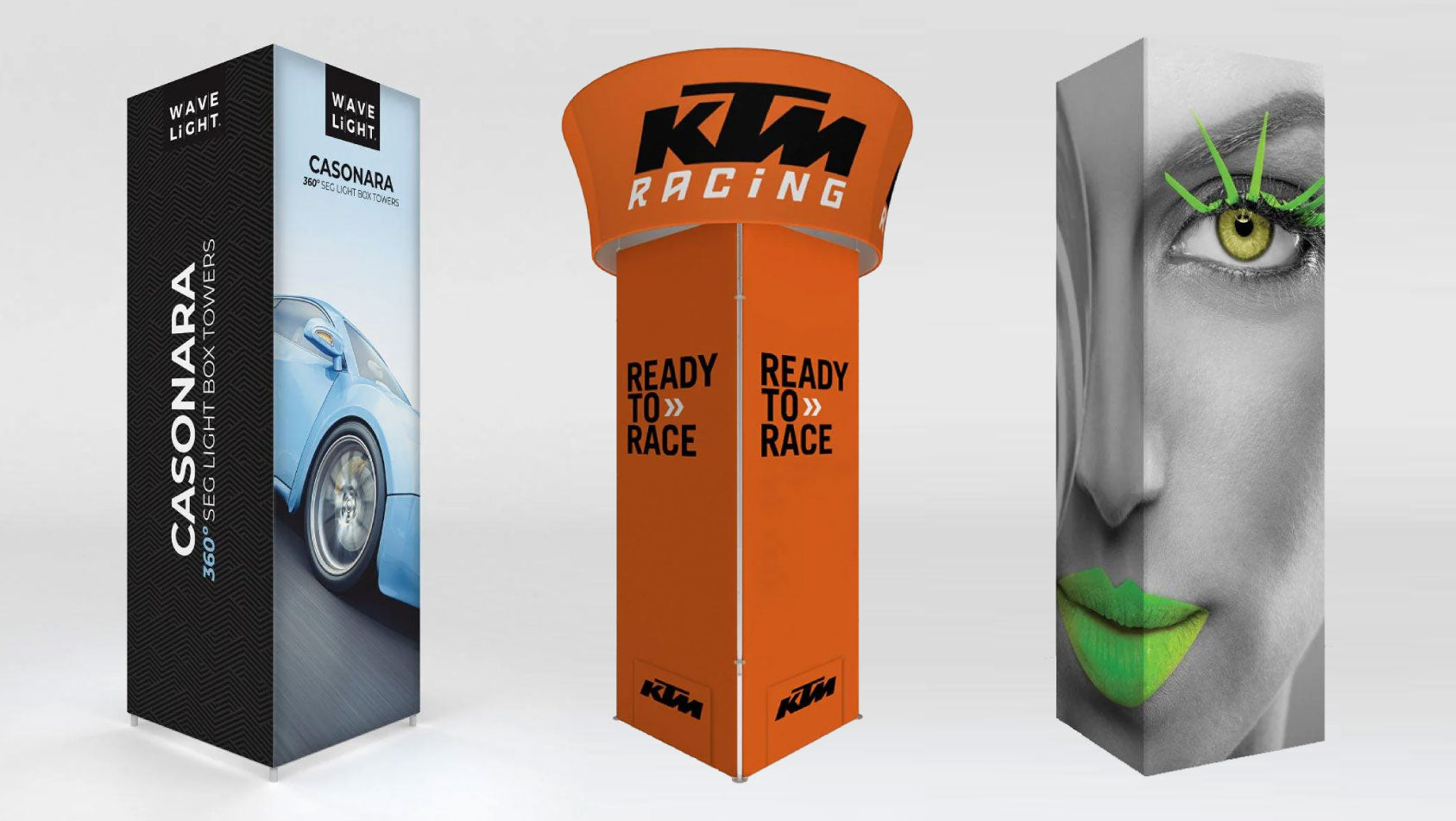 Choose from square, cylinder, or shield style towers to match your brand aesthetic, then select heights from 8ft to 12ft to fit your space and visibility goals. Each display features a sturdy aluminum tube frame paired with vibrant printed fabric graphics for a sleek look that holds up to repeated use. Add optional LED lighting packages to boost visibility and create an illuminated focal point that draws people in. Perfect for trade shows, conventions, retail environments, and promotions, tower displays make it easier to elevate your presence and keep your messaging front and center.