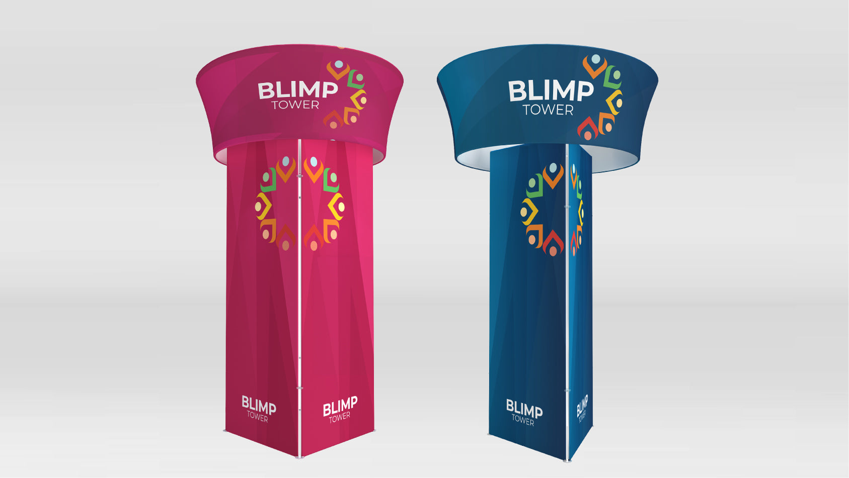 WaveLine Blimp Rotating Tower Displays command attention with motion and vivid design. Featuring lightweight aluminum frames wrapped in vibrant dye-sublimated fabric, they create a dynamic 360° visual centerpiece. Perfect for pairing with other fabric displays or kiosks, this rotating tower transforms any 20x20 exhibit into an engaging, customizable brand experience.
